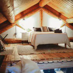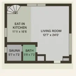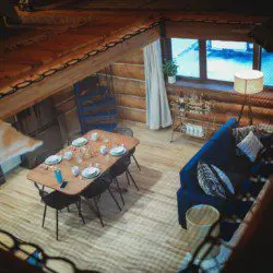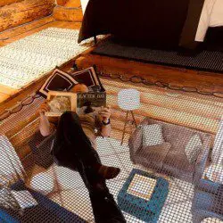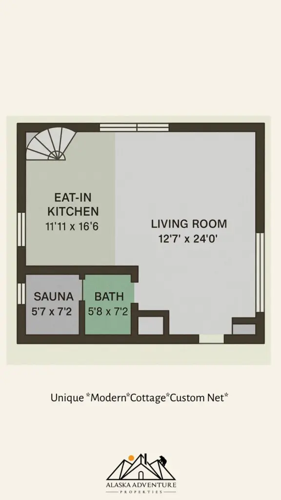 This cottage has an open floor plan. The main floor has a gorgeous kitchen with a gold farmhouse sink, tile backsplash and black stainless steel appliances with a dining table that seats 6. An open living room with plenty of seating with a pullout queen hid a bed. The bathroom is also on the main floor with a giant sauna shower . When you walk up the spiral staircase you will find a comfy queen bed, 2 twin beds and a built in hammock. Relax in the hammock that hangs over the living room and enjoy this unique space.
