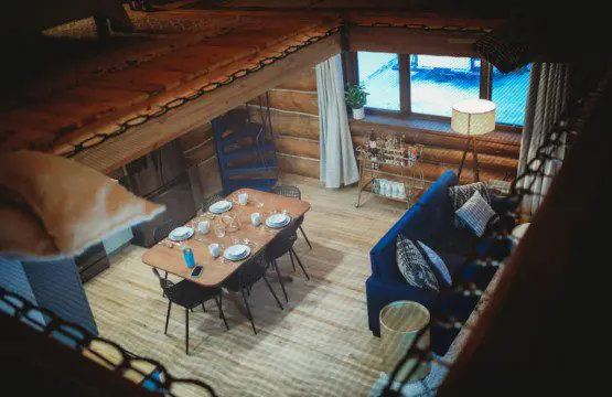 The cottage is located right in the middle of Fairbanks, there will be some train and plane noise. There are 4 treeshoues, a main lodge also located on the 3 acre property.