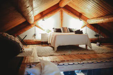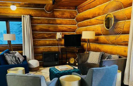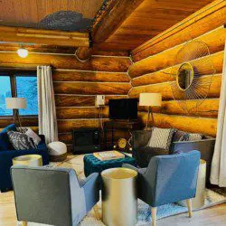 This beautiful log cottage has large windows that let in lots of light. It has a beautiful, custom, sauna/shower with a rain shower head and a washer/dryer. There is an open floor plan with the kitchen, dinning and living room all in one room.Upstairs has a queen bed and 2 twin beds with a large built in hammock. You will not want to miss, a stay in a one of a kind cottage on beautiful acreage located in the heart of Fairbanks with two shared hot tubs and a barrel sauna.